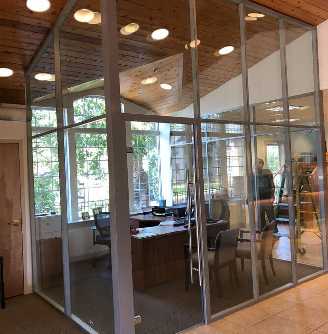 Glass Walls – Maximize natural light while creating private or semi-private spaces.